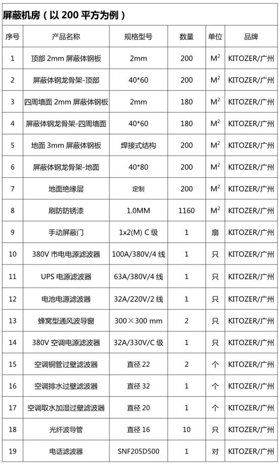 5)其它:电源滤波器、室内电气、室内装修、屏蔽观察窗等。