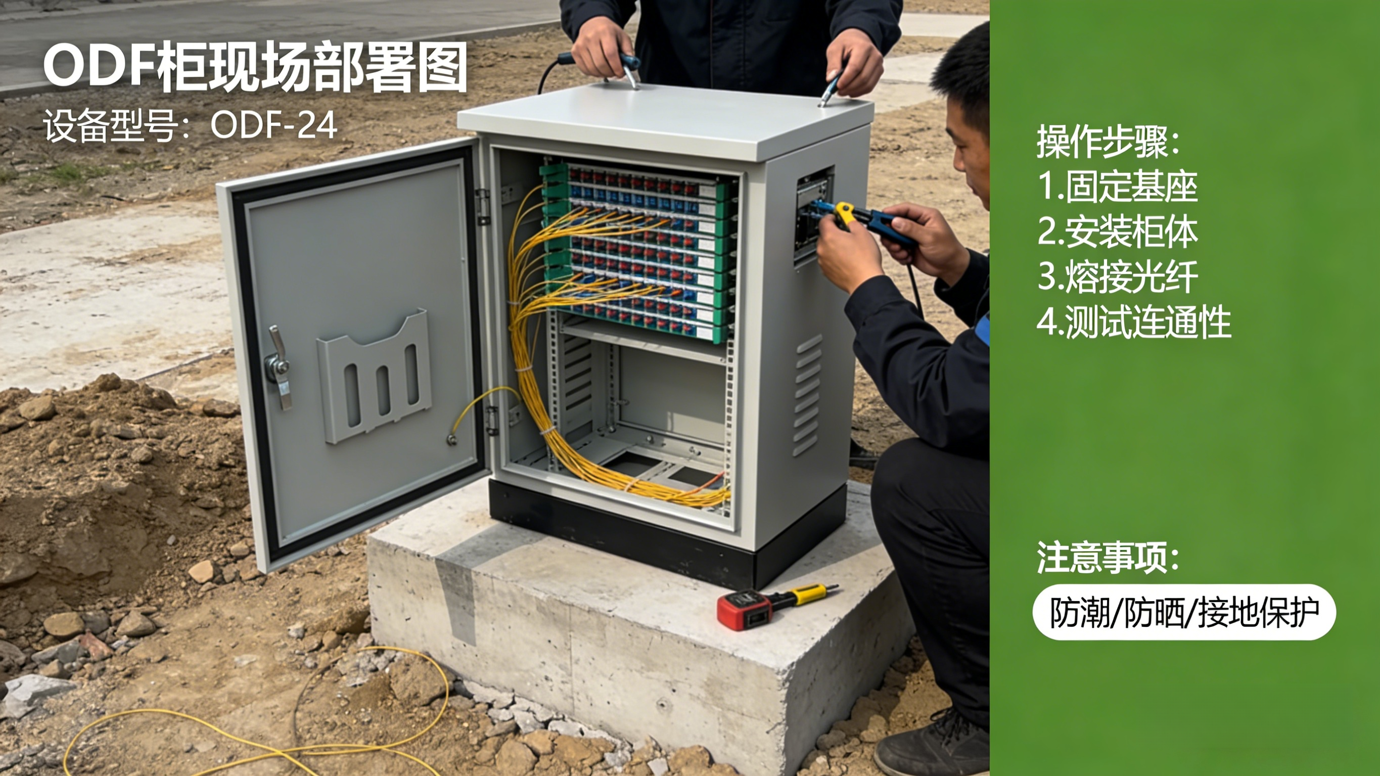专为户外光纤通信网络打造的专用配线机柜,集成ODF熔配一体化模块,实现光纤的熔接、配线、分光、存储,解决户外光纤布线杂乱、防护薄弱、运维不便的问题,适配通信运营商、广电、园区的户外光纤主干网、接入网部署。