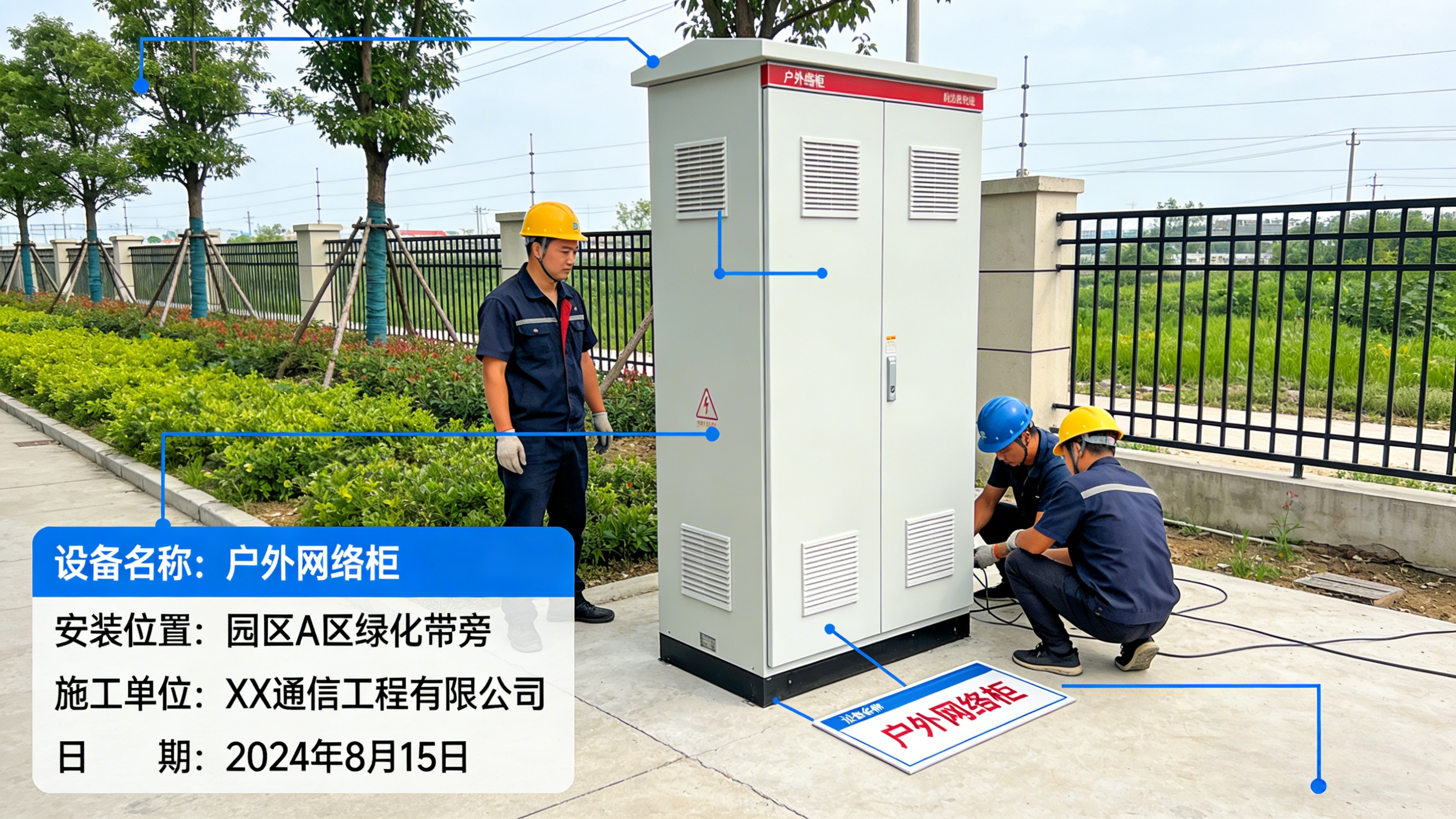 防护等级IP55,防尘防雨防电磁干扰;19英寸标准机架,兼容主流网络设备;风扇/热交换温控,低噪节能;集成PoE配电模块,直接为AP、摄像头供电;远程监控网络设备状态、温湿度;防盗报警,适配无人值守;布线规范,网线与电源线分离。